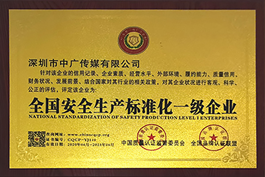 全國(guó)安全生產(chǎn)標(biāo)準(zhǔn)化一級(jí)企業(yè)