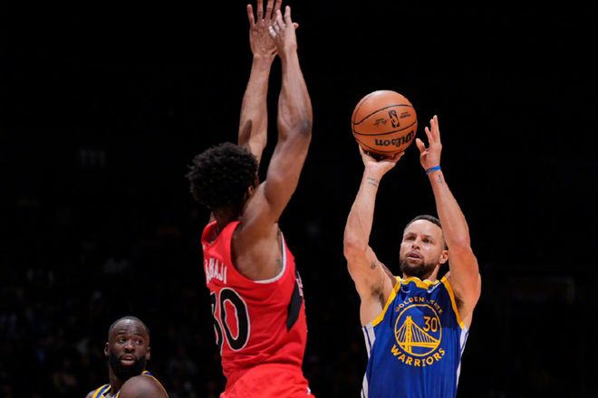 庫里本場比賽30投12中,三分11中4,空砍全場最高的39分,外加3板4助1斷1帽全能數(shù)據。
