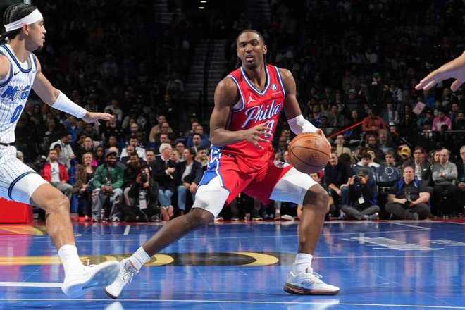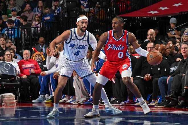 76人上一場主場117-127輸給熱火,魔術(shù)上一場客場129-138輸給凱爾特人。本賽季首次交鋒76人主場136-124戰(zhàn)勝魔術(shù),本場76人缺少恩比德、喬治、烏布雷、埃奇庫姆與博納,魔術(shù)缺少班凱羅、大瓦格納、艾薩克。首節(jié)開局魔術(shù)8-4領(lǐng)先,76人連得5分反超,魔術(shù)也連得5分奪回領(lǐng)先。雙方之后纏斗至魔術(shù)17-15領(lǐng)先,76人一波6-0攻勢反超,魔術(shù)之后29-35落后,沃特福德與比塔澤一度抱摔雙雙吃T。魔術(shù)連得6分追平比分,首節(jié)結(jié)束雙方維持35-35。首節(jié)雙方均是命中3記三分,76人19中11接近6成準星,魔術(shù)多12次投籃31中12。