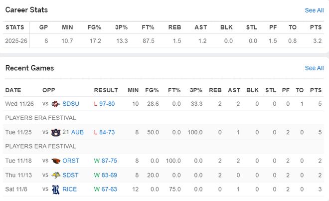 林葳前6場比賽都出戰(zhàn)了,場均10.7分鐘,拿到3.2分1.2助攻1.5籃板0.8失誤0搶斷0蓋帽,命中率17.2%,三分命中率13.3%。不得不說這個表現(xiàn)跟他在CBA有著天壤之別,合計就是6場比賽29中7,三分15中2,Dana Altman棄用他沒有一點問題,如此糟糕的表現(xiàn)繼續(xù)用不是對隊內(nèi)其他努力的球員失公允嗎?