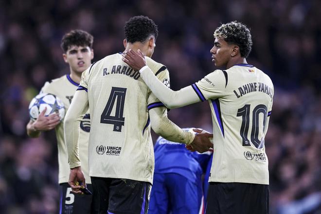 此役首發(fā)登場的阿勞霍在第32分鐘因?yàn)椴粷M判罰抗議吃到黃牌,當(dāng)時(shí)巴薩已經(jīng)因?yàn)榭椎碌臑觚埱?-1落后。